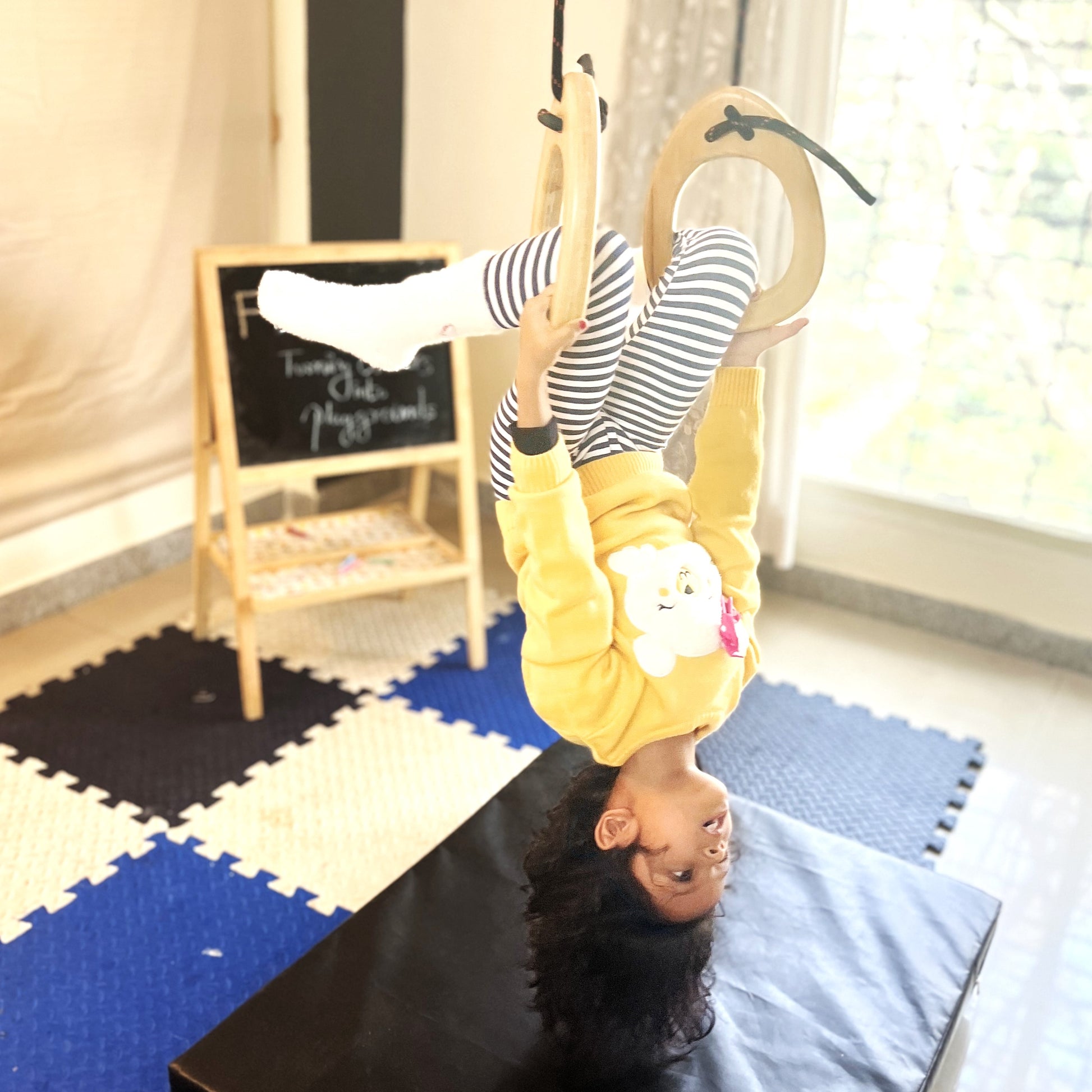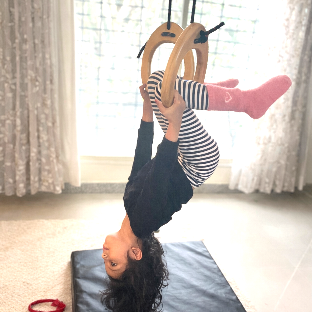 The height-adjustable system grows with your child, supporting coordination, strength, and mindful movement through every stage